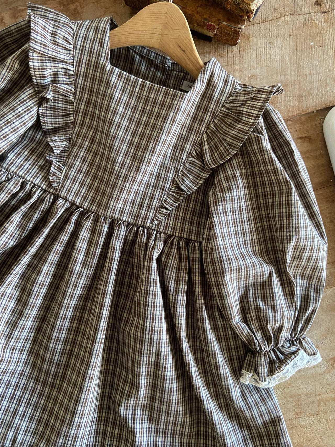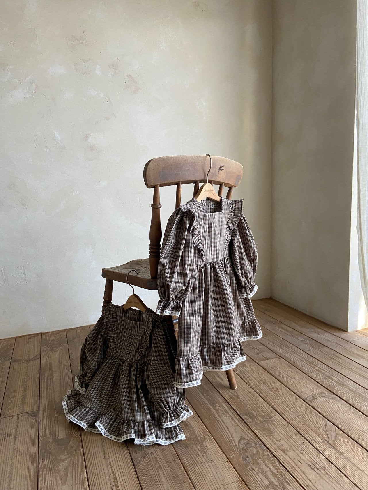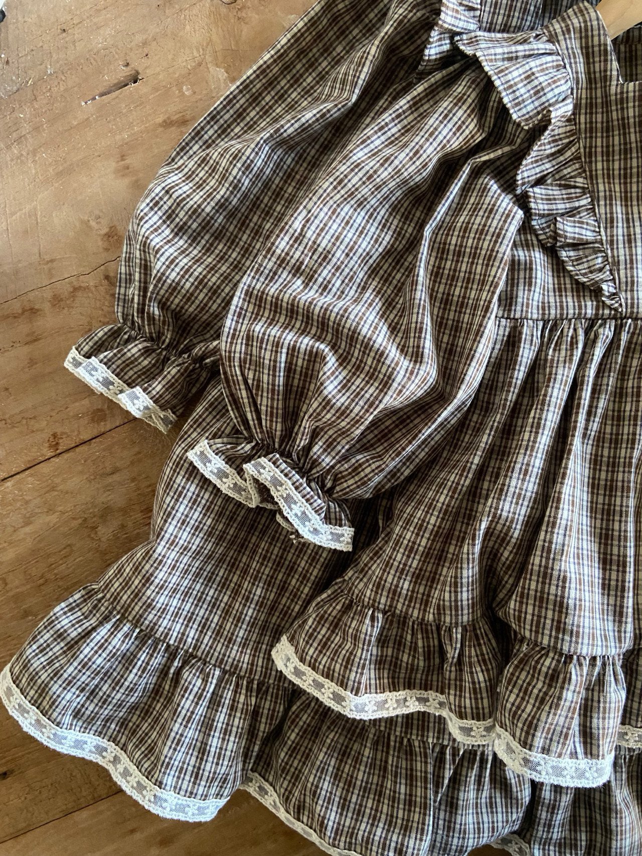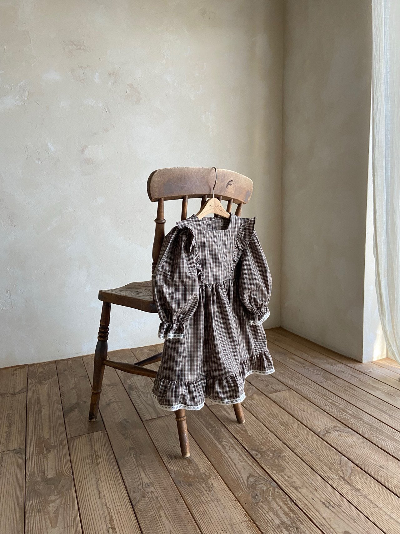 • Romantic girls dress featuring a delicate check pattern with frill and lace details